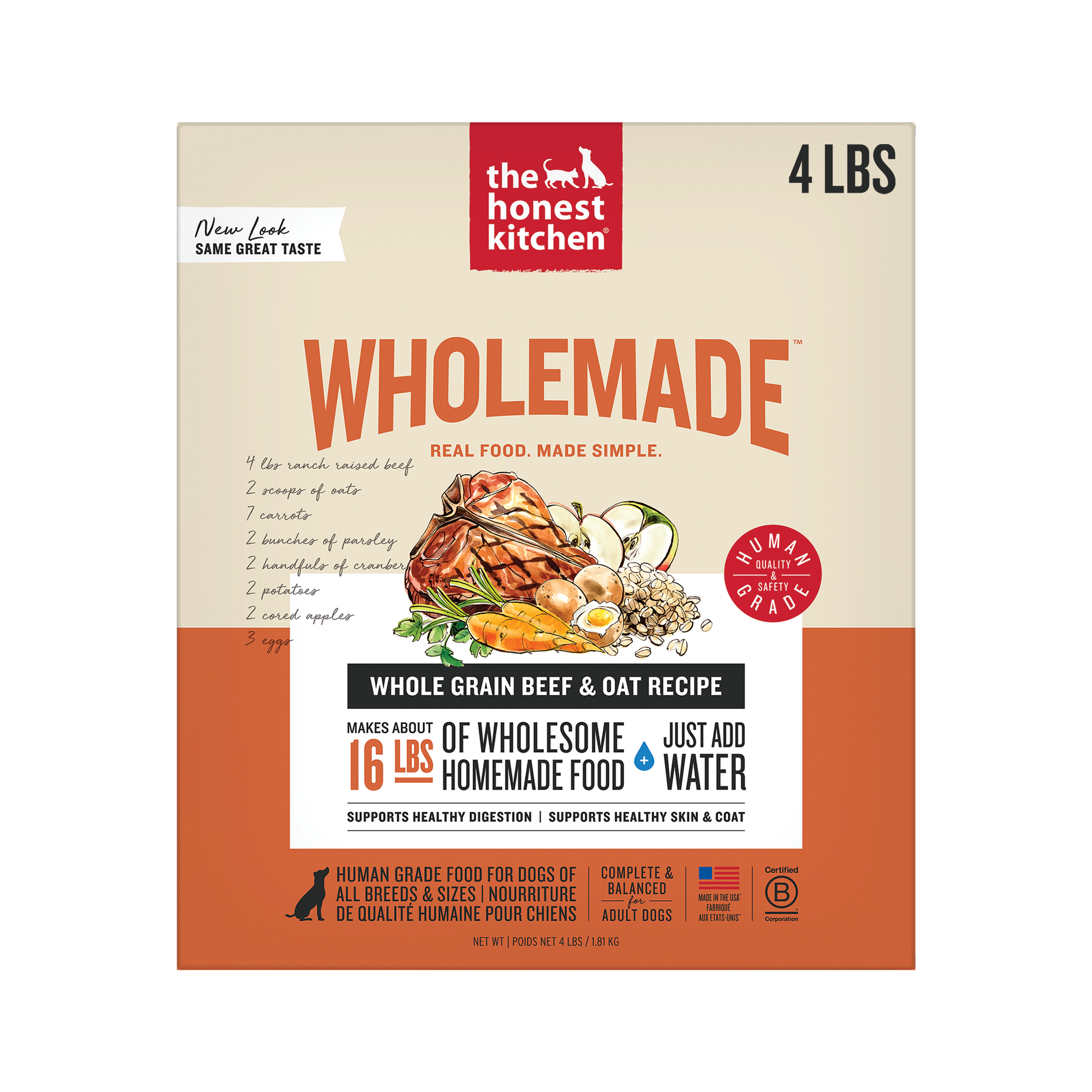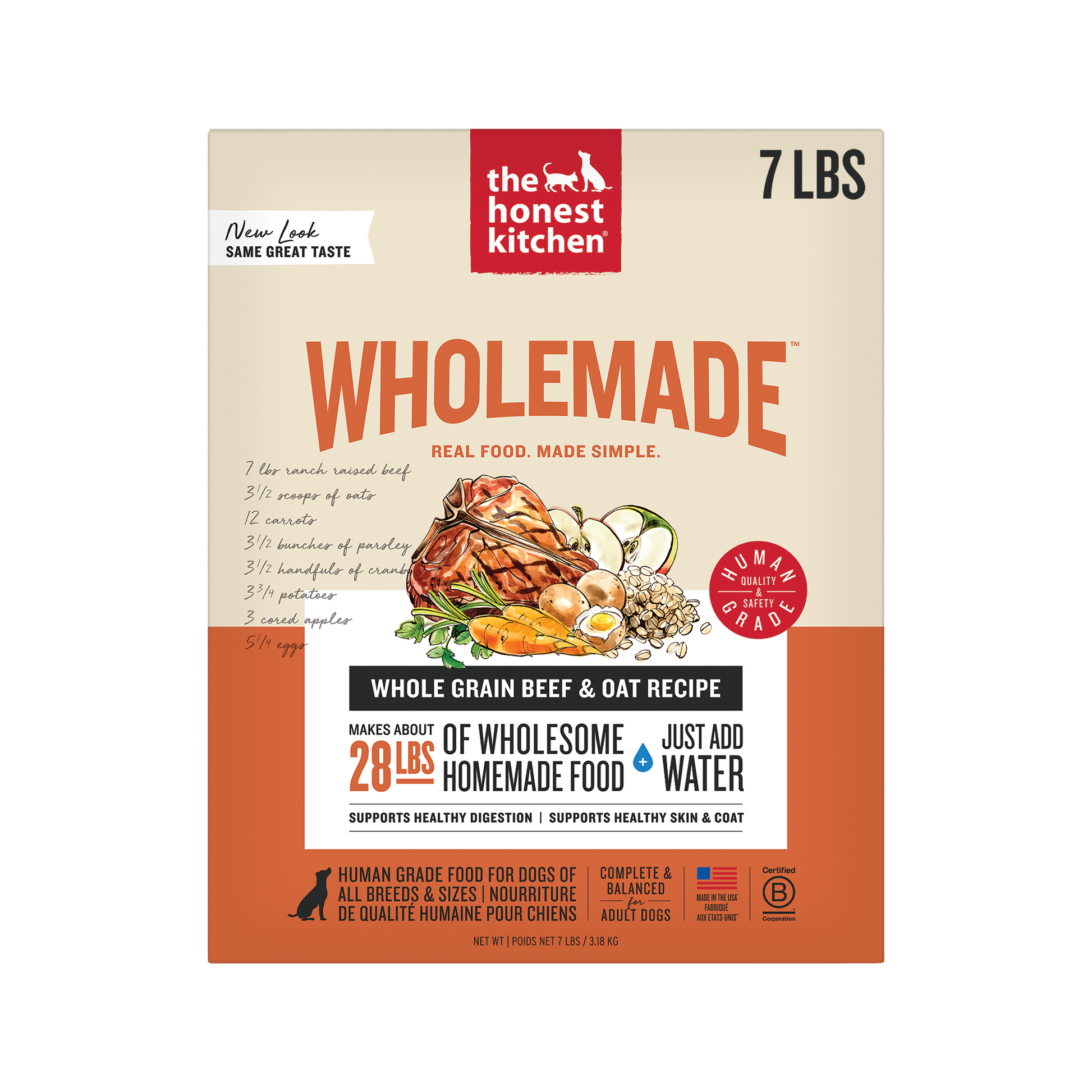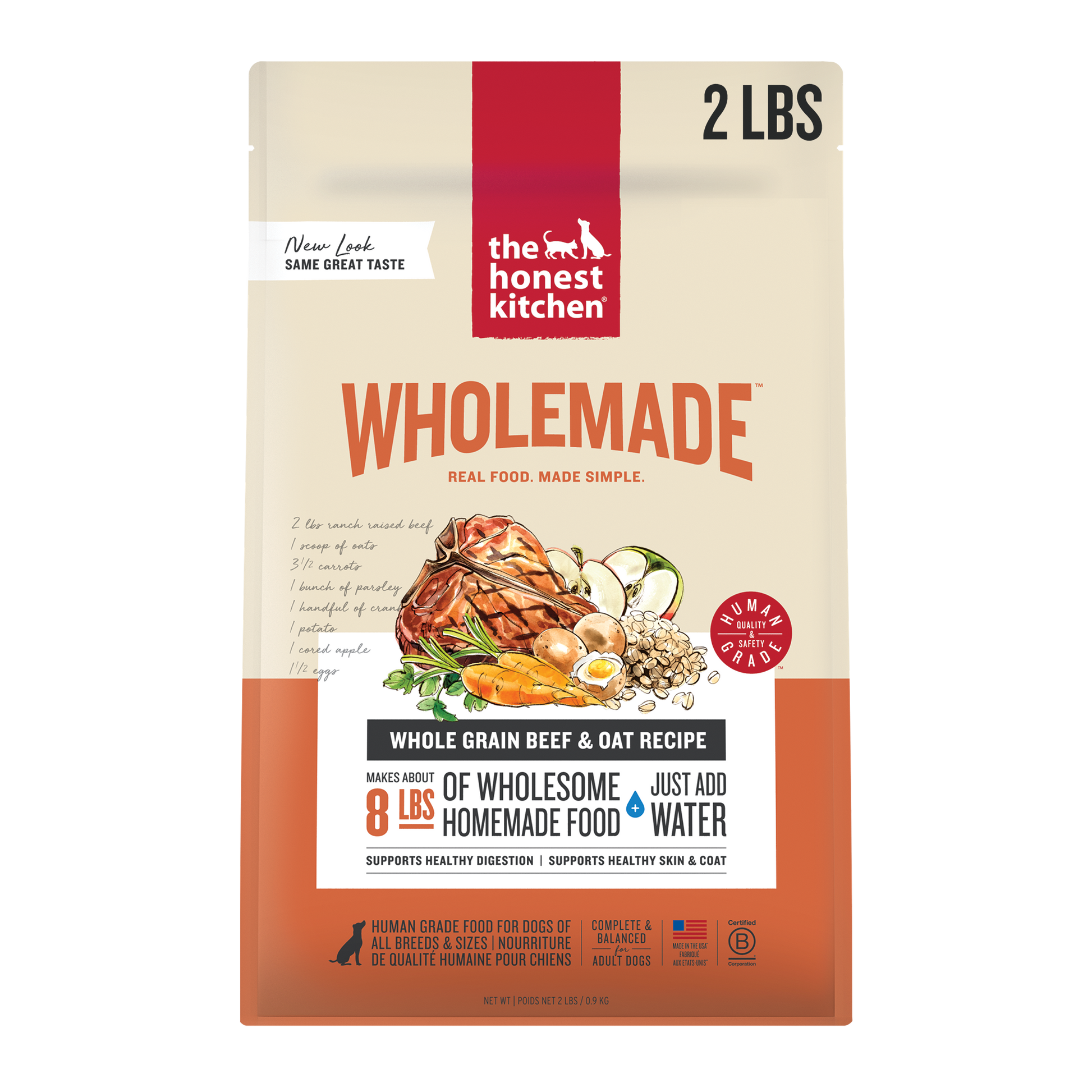 Wholemade™ offers the benefits of fresh, homemade meals — real ingredients, minimal processing, and robust nutrition — in a convenient, cost-effective form. Just add warm water to serve as a complete meal, a topper or pair it with your favorite enrichment toy.