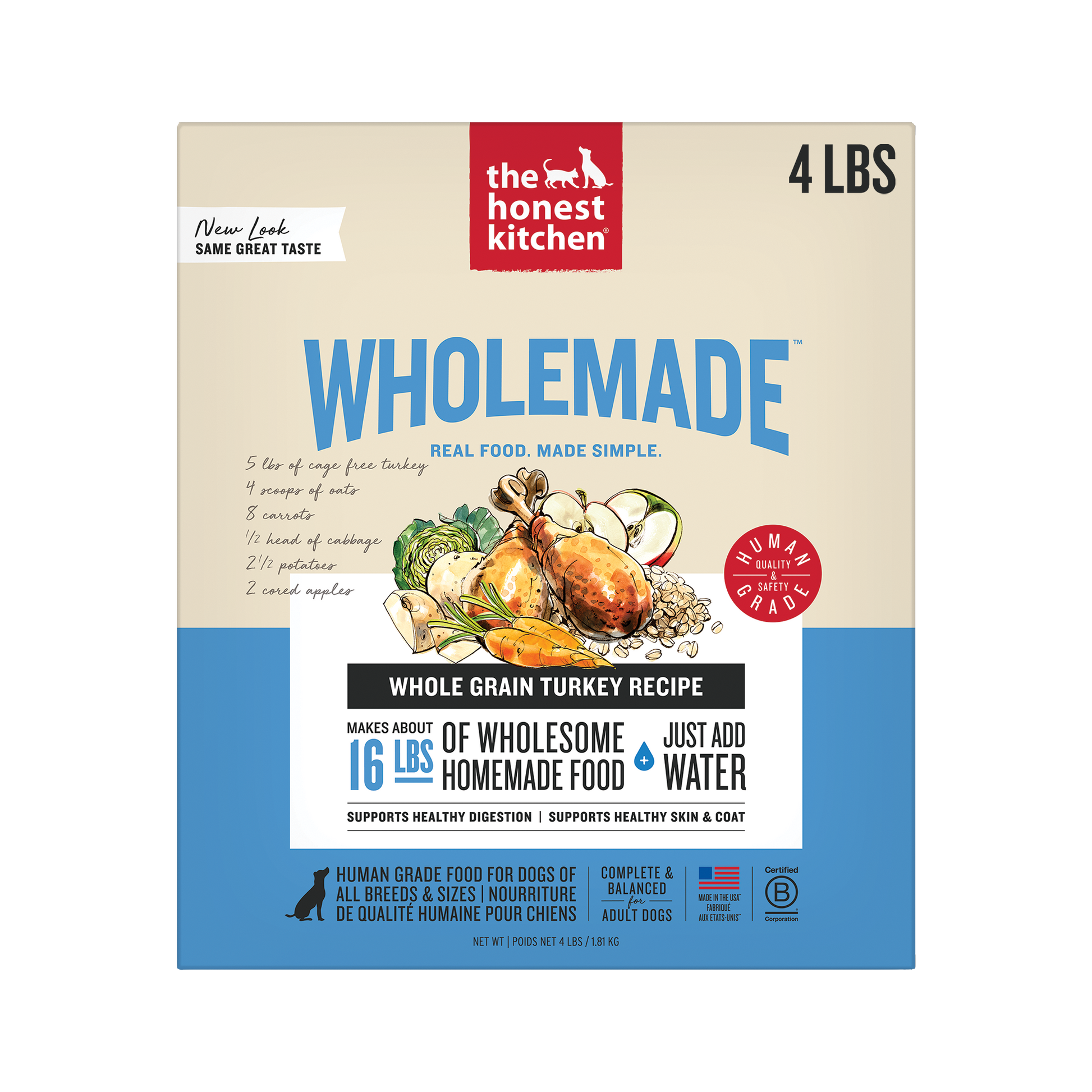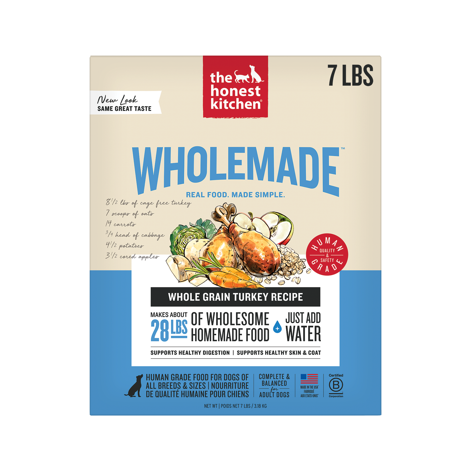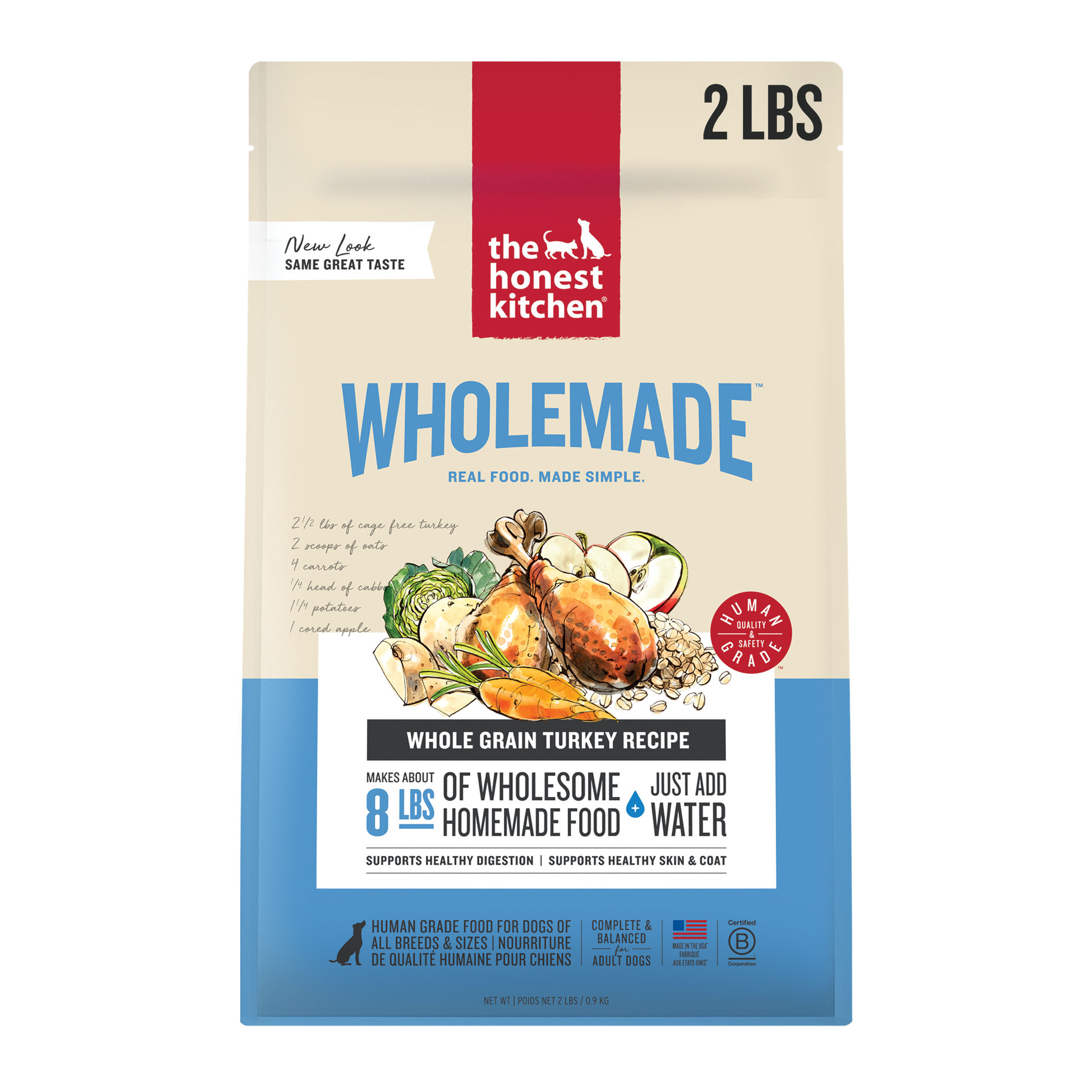 Wholemade™ offers the benefits of fresh, homemade meals — real ingredients, minimal processing, and robust nutrition — in a convenient, cost-effective form. Just add warm water to serve as a complete meal, a topper or pair it with your favorite enrichment toy.